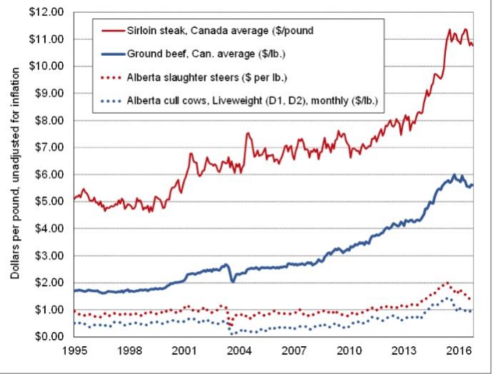As further proof that our cattle prices shouldn't be where they are take a look at these charts from StatsCan October 2016.