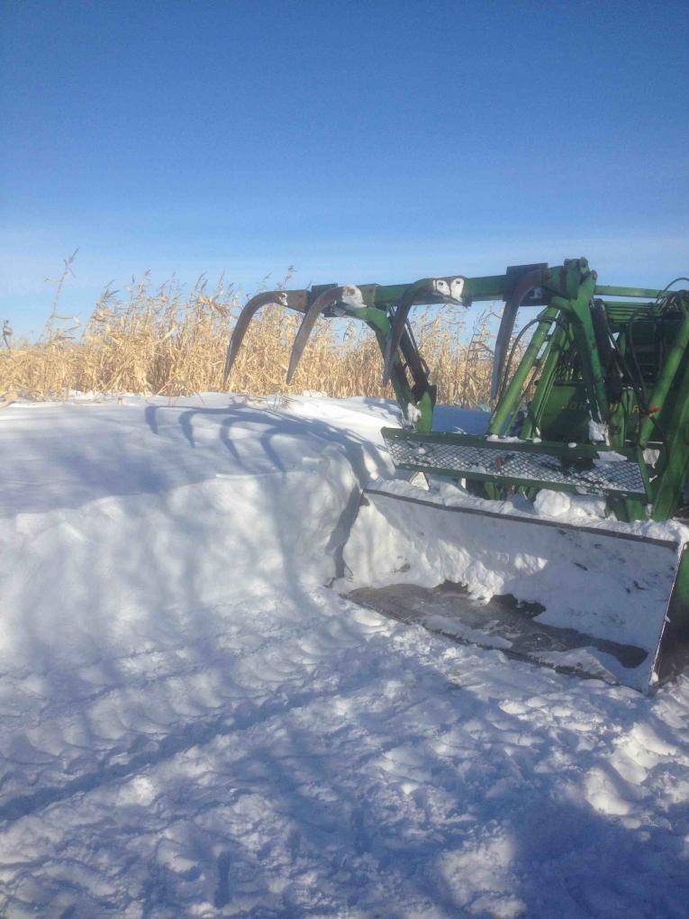 It varies. On the north side the snow is drifted in and almost as deep as the permanent electric wire that is there. Then it tapers to about a foot or two across the rest of the field. This is about as snowy as we've had it right now. It looks like they'll get through it just in time. Whatever they don't get is guaranteed deer feed. it would be all gone by spring cows or no cows.