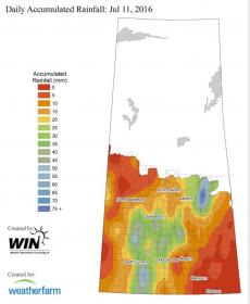 But the big cost is Economic impact from flat flooded fields that are already saturated with water. These areas will turn yellow in a few days then brown and finally black and dead even if they are headed. Brown patches of canola that looks filled etc. Lentils don't like wet feet and disease will take hold.