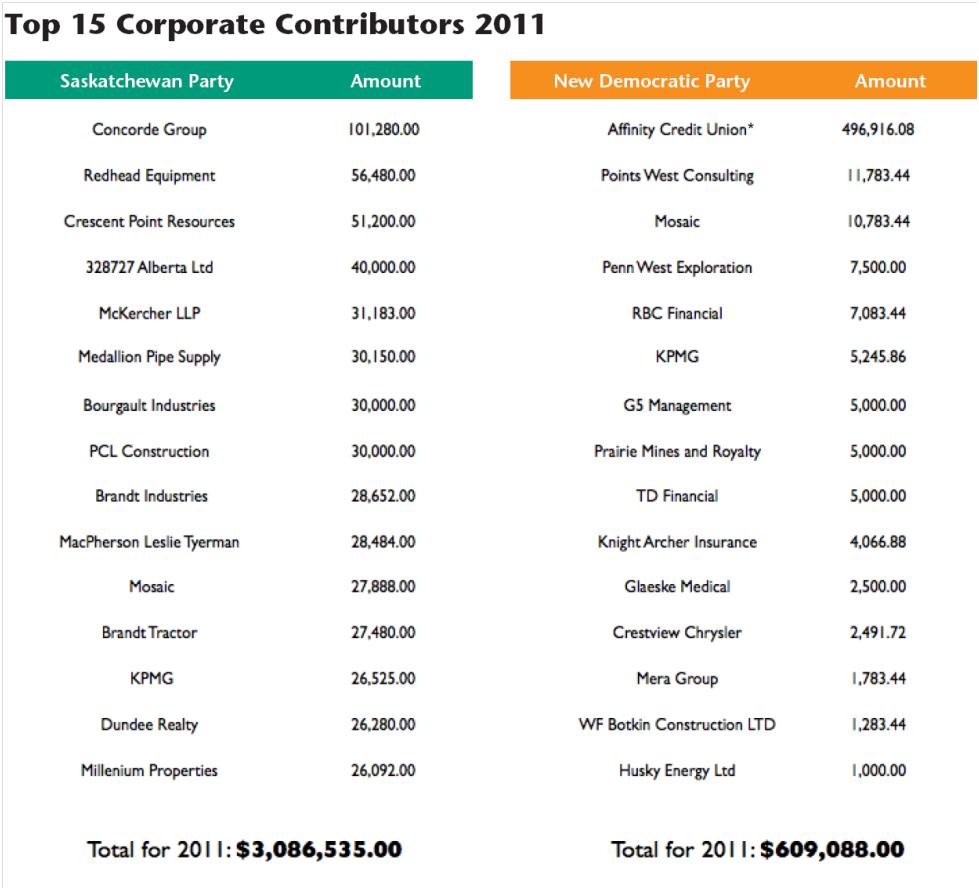 When you find some of Brad Wall's largest corporate donors his public statements start to make a lot more sense.