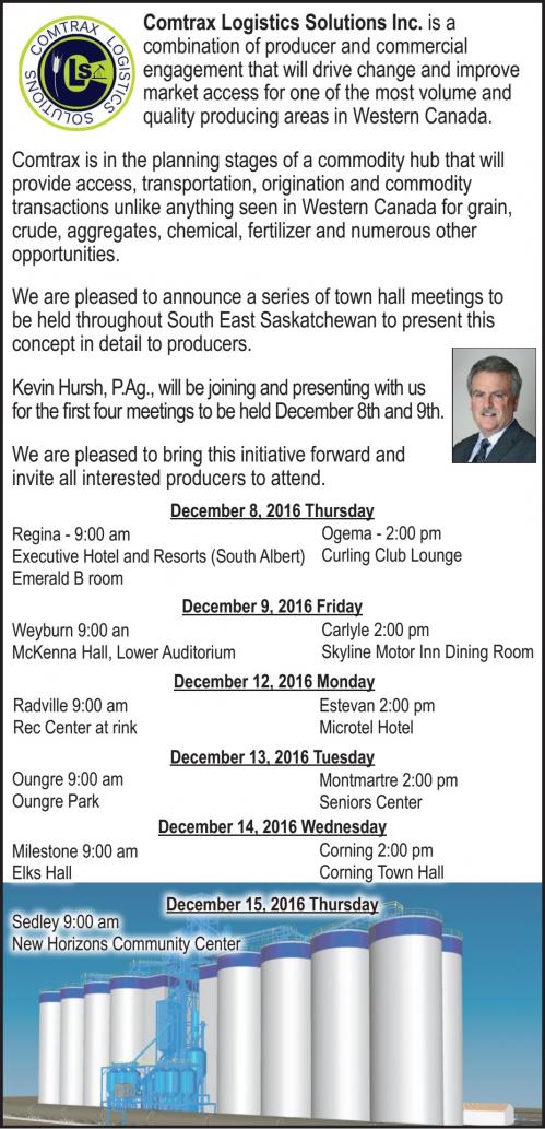 Congratulations to Comtrax Logistics Solutions for their innovative concepts, their faith in our farm communities as a place to invest, to the planners for dedicating their time to creating wealth in Saskatchewan.