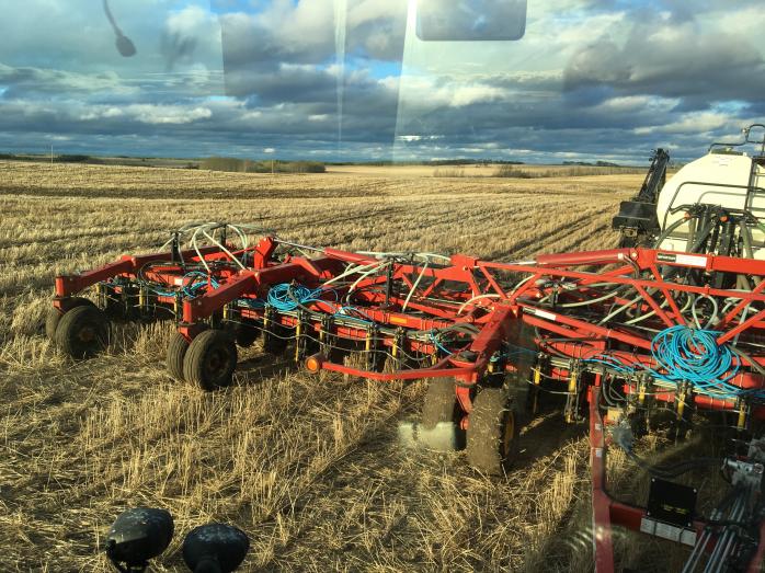 In our area most are just started but a few with land south of the valley are well on way to finishing before the big rain on Monday. They were at 75% the other night. Others south of town are doing very well as it is way dryer than north. Most north of town got going on Tuesday morning and it looks like its full Seeding ahead till the storm. Lots are harrowing in front of the drill to dry out the land. Works really good I did a half on Saturday and seeded it on Wed. Went end to end. North you see lots of Empty tractor road travel. ( Drill stuck so harrow guy has to unhook the tractor and drive and pull out the drill on other field and then back to harrowing).