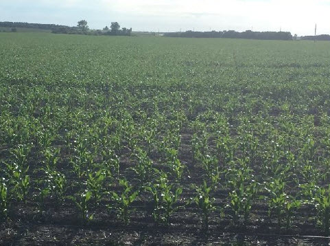 Day 9 Jul 2, 17 #cornbelt17 Hwy 83 & 5 & 15th Ave. NW below West Hope, ND corn & soy crop avg.- below average compared to record crops in 16