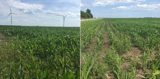 Day 16 Jul 9, 17 #cornbelt17 Hwy 18 N of Lafayette, IN emergence a problem near Lafayette, IN 2017 vs. 2015