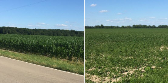 Day 4 June 27, 17 #cornbelt17 East Hwy 143 near Pierron, IL late planted corn vs. early planted