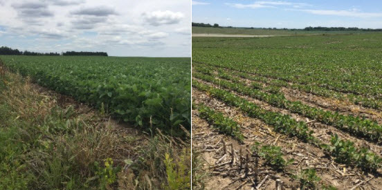 Day 7 Jun 30, 17 #cornbelt17 N Hwy 81 & 256 st, Platte Centre, NE irrigated best beans yet vs. non-irrigated Thank You #GreenfieldGlobal