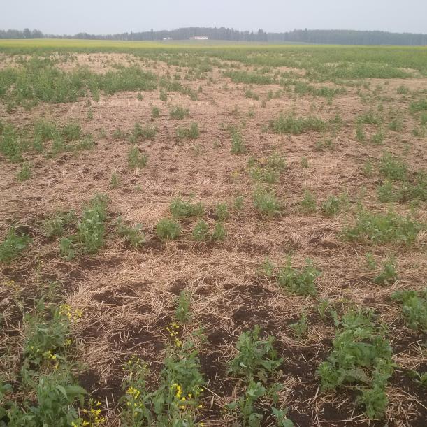 Here is my ugliest pictures. This nearly bald area is the most productive soil on the farm, never fails, until now. Latest scourge is slugs, they are killing entire plants, seeing lots of large plants dead with no leaves left. Not quite sure how to explain why the problems are worst in this spot? Was harvested this spring a few days before direct seeding, was a massive barley crop, lots of residue, flat on the ground since July of last year which would have been perfect for the slugs. Seeded too deep ( wouldn't have been too deep except a 2" downpour collapsed the furrows and buried the seeds much deeper). Low plant population was then attacked by flea beetles, sprayed them twice, but they still took any plant that grew, only a few survived long enough to be eaten by slugs. And they are still covered in flea beetles. A good hailstorm today didn't help matters.