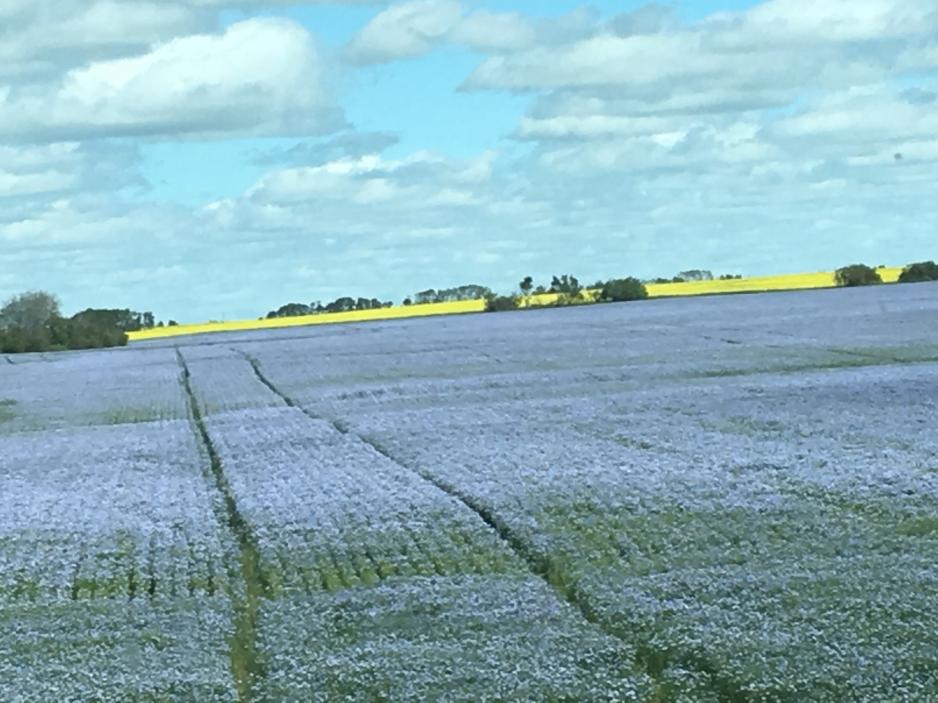 Flax full bloom and not looking bad. Some sprayed and some just went fishing.