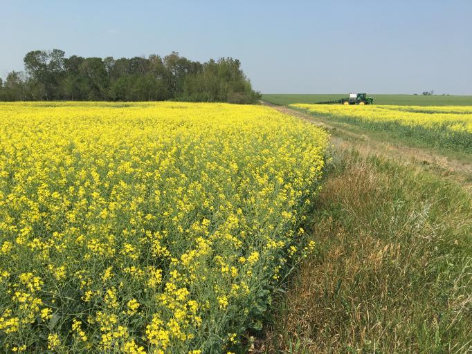 Canola some sprayed some did the new test and didn't. Test showed less than the 10% so Why the F$%K would you spray. Canola is different than wheat, Short thick canopy of leaves touching each other and damp under their. Dew every night and no splashing of rain from ground up to hurt Canola. Later seeded and rain might have some issues if we actually get a rain.