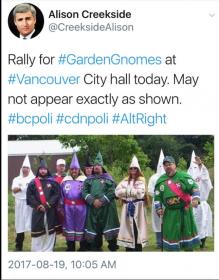 A good week all around for humanity. These clowns below being laughed out of town in Vancouver today, similar result in Boston, Rebel media going down in flames, Bannon gone. And now this prediction that Trump will resign: