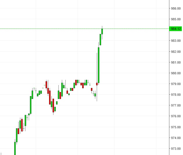 Will probably bounce around the 984 and end a little lower. The big test will be next week. Further increases that hold in the 10+ area will show some real strength. It needs to happen quickly. If 10 fails to hold or doesn't get close it may be new selling will take control