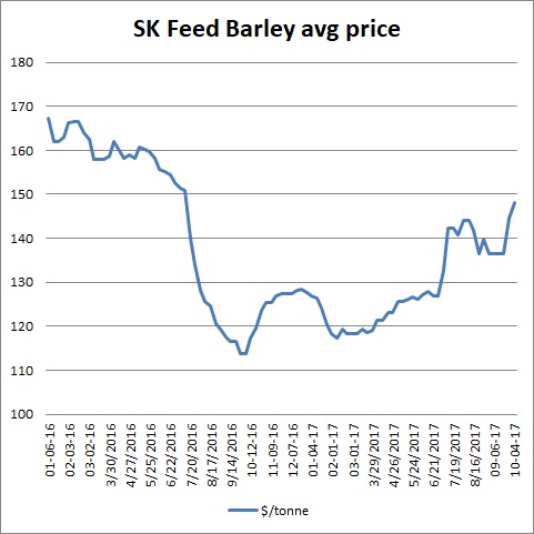 Sask prices might see a bit of an increase from present levels. A few offers at $160 are out there. $175 Apr/May