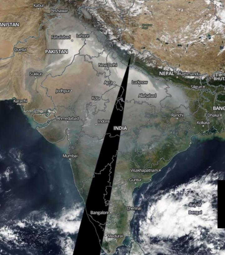 The greater part of India is bathed in smoke and pollution on Nov 9