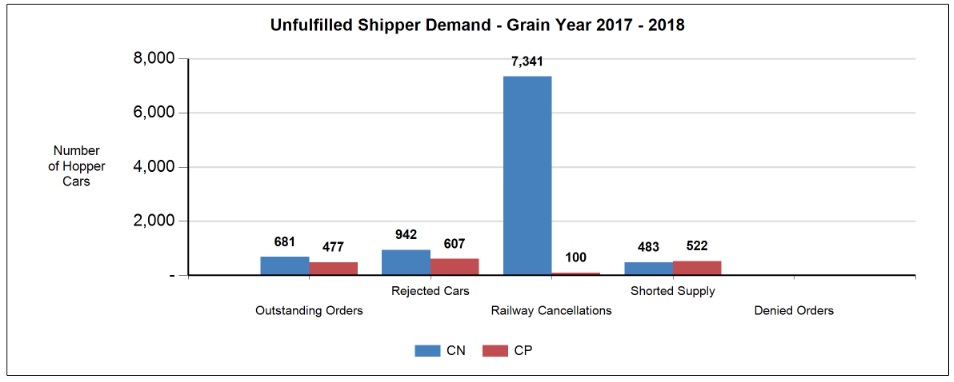 CP has been executing their shipping plan and CN hasn't. CN has had problems with derailments. That really got them behind and they have been unable to do anything about it to make it up. This can have a ripple effect. Not good. Likely CN is making grain wait while it gets things straightened out.