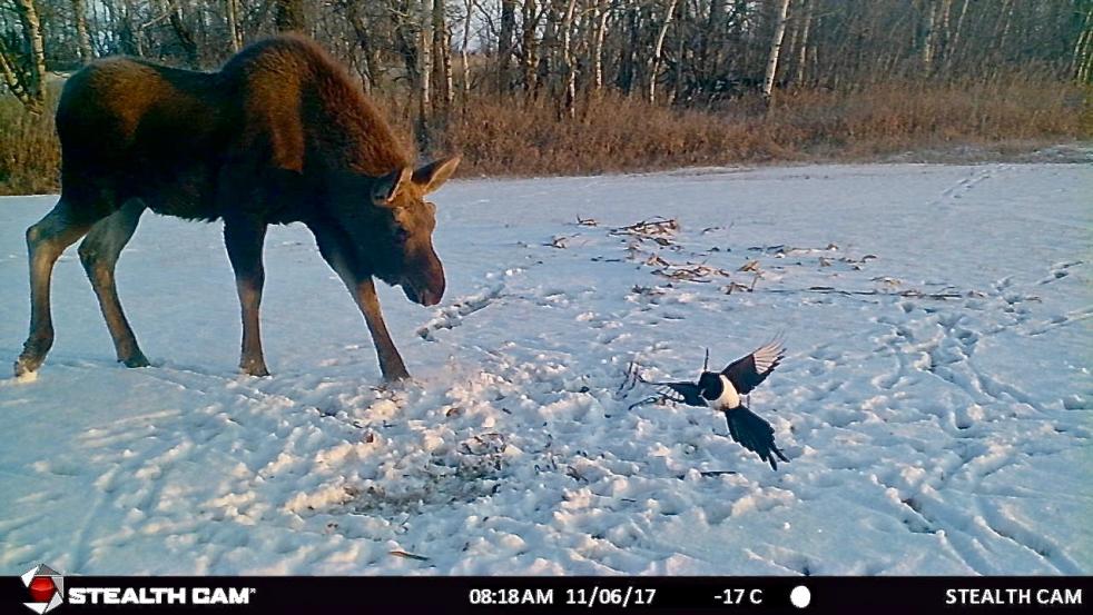 Herds of elk have been coming up into the barnyard. They cross the highway at night and feed, then return south before dawn. No moose in the yard this year that I have seen. They have bedded down 15 feet from the house in other years. I've taken pictures. Pars