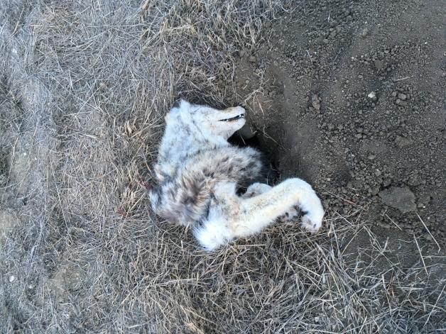 ID:	766243n a badger was digging a hole and a half hour later it's chewing on this poor coyote