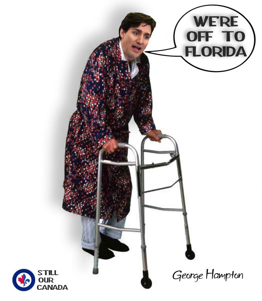 So again our leader is gone because he works so hard we need a government jet and crew to go to florida. Hell you Pay for it like i do but no its paid for by the taxpayers of Canada. So i guess i just got home and am paying for another trip again.