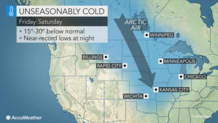 A blast of arctic air will bring frigid nights to the central United States and may cause damage to the winter wheat crop over the southern Plains this weekend.