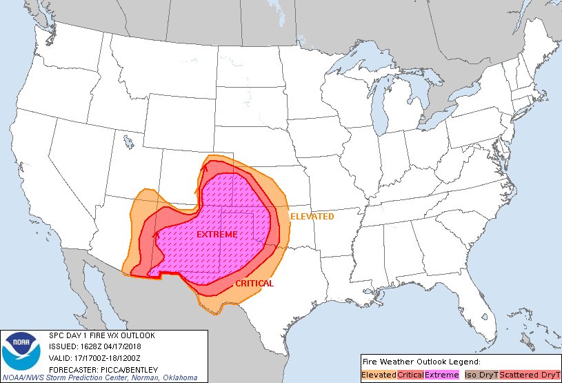 Extreme Fire risk in southern plains.