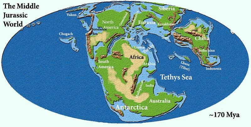 Here is why I did not go back to the Jurassic Era. Because the world looked nothing like it does now. North America had not started the continental drift to the North West. The entire west coast was volcanic islands, spewing out green house gasses. And the Canadian prairies and mid west US was actually a shallow sea. Now I am not sure why you think farming the area we do now would be better when it was covered by salt water, but what ever, you claim to be a real farmer. And do take a look at the graphic of the world land mass, and note how much smaller it was during the Jurassic Era because of much higher sea levels. Try and fit 9 billion people on this area without fighting wars and food shortages.