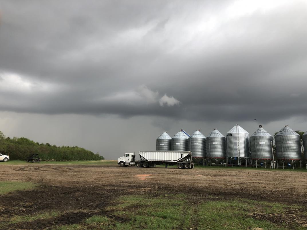 Well, the big storm was fun to watch last night on Radar. It looked awesome slowly moving NE at a projection that would hit the farm full centre. Were on the last 25% of the crop to get seeded and with some going to a Grad this weekend it would have worked out great to have a little break. Well, it crossed the valley and made a Bee Line East and followed the highway to Melville. Who was the Rain Capital of Sask up till the Melfort/Humboldt downpour last night.