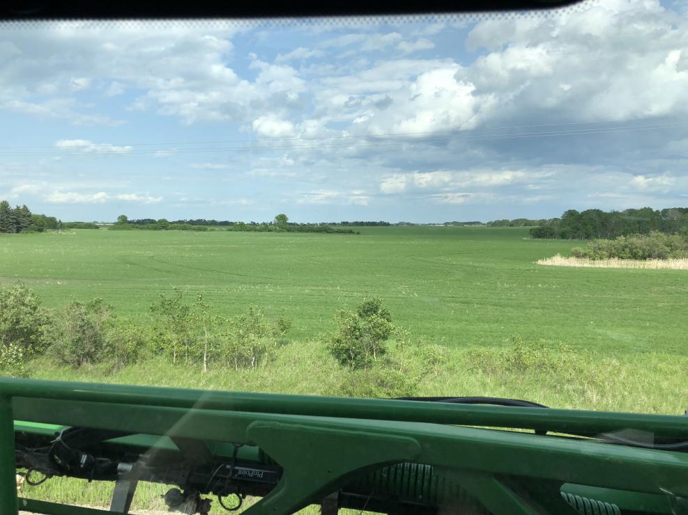HRS is up and some early stuff is getting its Wild oats spray. Fields are really clean guys are waiting a bit to see if we get another flush after the rain. HRS looks good so far. Some yellow in areas with excess rain but good. We might get to the first fields of wheat today if the rain stays away.