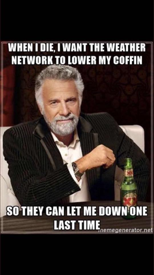 Yup Mallee...that meme(at least that's what they're called in Canada) nails it for me. My conscience would never let me be a weatherman...I"m too much of a straight shooter.