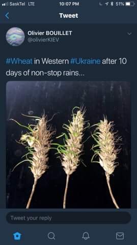Wow if the heads look like this....imagine how wet the fields are...that deep deep black dirt will be flooded and not traversable with any machinery without weeks of hot dry weather. I still have PTSD from our wet fields in 2010,2011,2012,2014,2015,2016....Originally posted by fjlip View PostConsumers will just gobble this down, sprouted grain bread[ATTACH]3189[/ATTACH] is healthier...