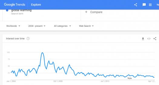 I also searched Al Gore, David Suzuki, Micheal Mann, cap and trade, carbon tax, SLR, CAGW, and any other related search terms I could think of, all have a very similar downward slope. People have lost interest. Check out the box office numbers for An Incovenient Sequel.