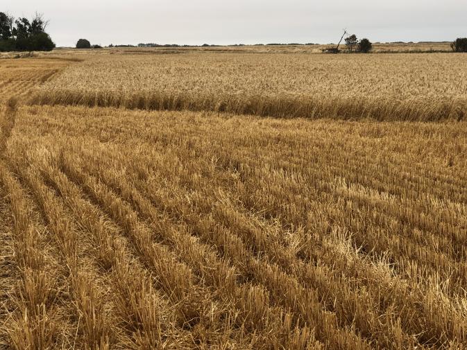 HRS. For the most part, a lot of the 2018 HRs wheat crop is in the bin last few fields are getting harvested and these are the larger guys and the guys who bet on growing HRS instead of oats and barley or canola on canola. Yields are similar to higher than last year. It depends on fields but most that had the rain is doing very well. The grade is a Number 1 with protein from 11.9 to 16.7. But if it yielded stupid stupid stupid the protein is at the lower end of the scale. AC Brandon has done an exceptional job but in a very dry year, its height could be a problem. It's short. 10 out 10.