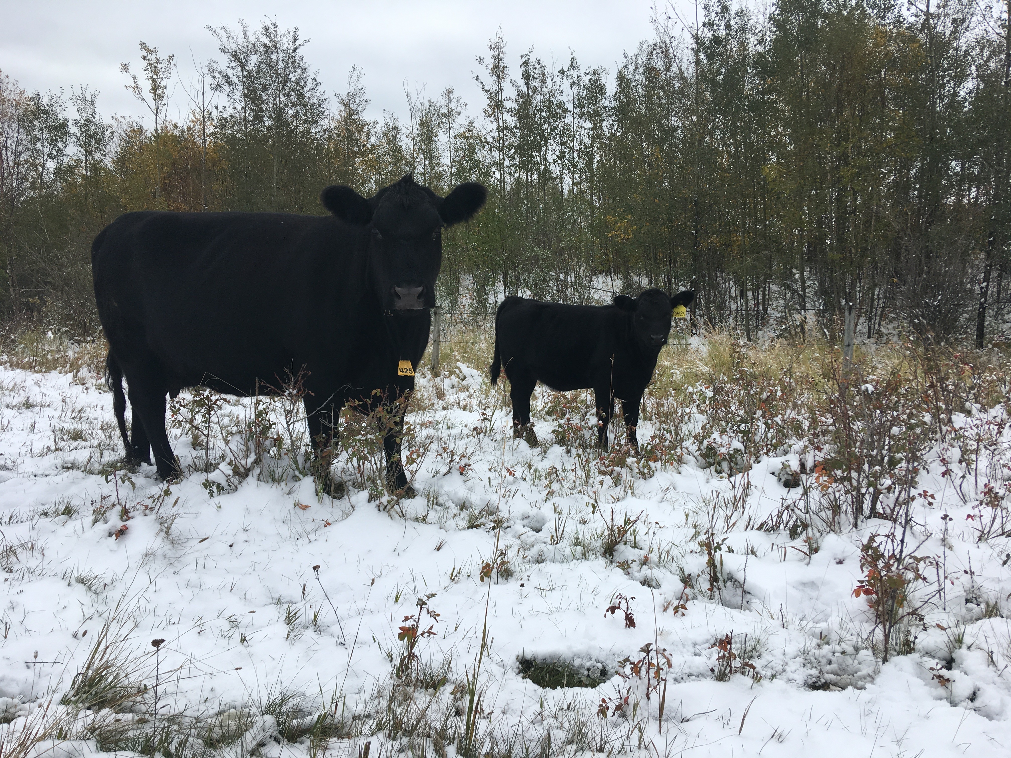 Sounds exactly like us west of Edmonton except the crop is about 2/3 of normal due to a dry spring and summer. Been snowing some every day since Tuesday and looks to keep coming. Doesn’t seem like we got a killing frost yet since it’s been snowing every time it dips below freezing. Got some late oats that we were planning on grazing already but it’s too muddy and I’ll have check the nitrates as well. The crops are now going down as well just to make sure we get to use our new to us swather lots.
