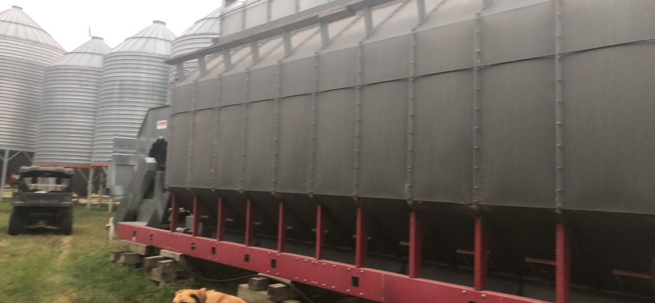 How many bushels of wet bin and how many bushels of dry bin do you have currently? Dryer looks to be 12-1500 bushels/hr taking off 5% in wheat. Must keep one guy busy moving grain away from the dry bins.
