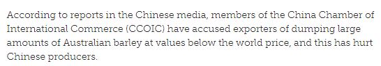 China Tenders for barley. Multi country origin. Tenders usually differ from $8 to 12 USD top to bottom. China announces winning tender. Grain is shipped and delivered. How is this dumping and undercutting local suppliers?