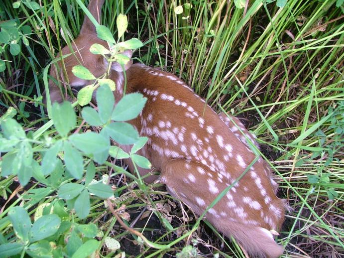 I petted a fawn about that size a few years ago. Out checking crops and stumbled on it. Dad ran one through the Haybine many years ago, felt terrible. Our neighbor was riding her horse when they came upon a deer that had just given birth seconds before, almost 70 years ago, and made quite an impression.