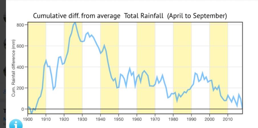 Made comment to him since mid 90s years getting less growing season rainfall and more summer storms no good for us.