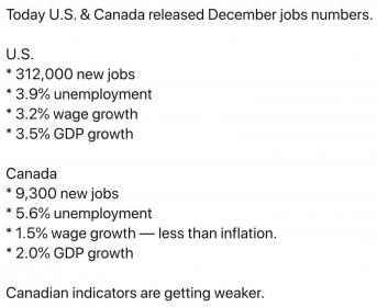 First a disclaimer, I am not a Donald Trump fan. I am tired of his constant tweets and how much his tariffs have affected us in Canada. But something clicked in my head today when I looked at the jobs reports from both the U.S. and Canada. The U.S. gained over 200000 jobs and Canada 9300 I believe. In my home province of Alberta we lost 17000 jobs. So I wondered which leader has a higher approval rating in his own country? A bit of quick googling and it appears Donald Trump has an approval rating of 44% if you look at realclearpolitics or around 50% if you look at Rasmussen polling. Justin Trudeau's latest approval rating according to Angus Reid is 35%. What sticks out to me is let's be honest, if you were Justin Trudeau how would you feel? He has certainly chastised Donald Trump in the past but Donald is still more popular in his own country. Any thoughts?