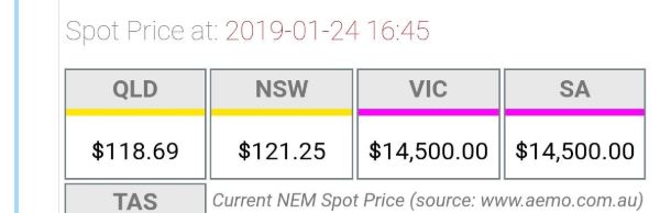 We had emergency diesel generators kick in for first time , plus now think we had power come in from NSW apparently. In such situations power generators set there own price it seems.