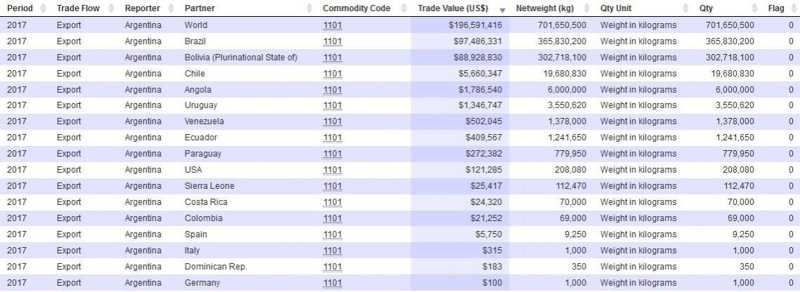 Argentina has sizable wheat trade with Bangladesh, Thailand, Vietnam and Indonesia. Comtrade does not list wheat flour to Asia