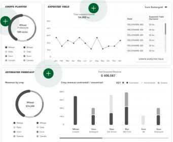 Quickly see what’s on your fields, in your bins, and delivered on contract. View crop status, expected yield, contracts and surplus grains, and your revenue at a glance.