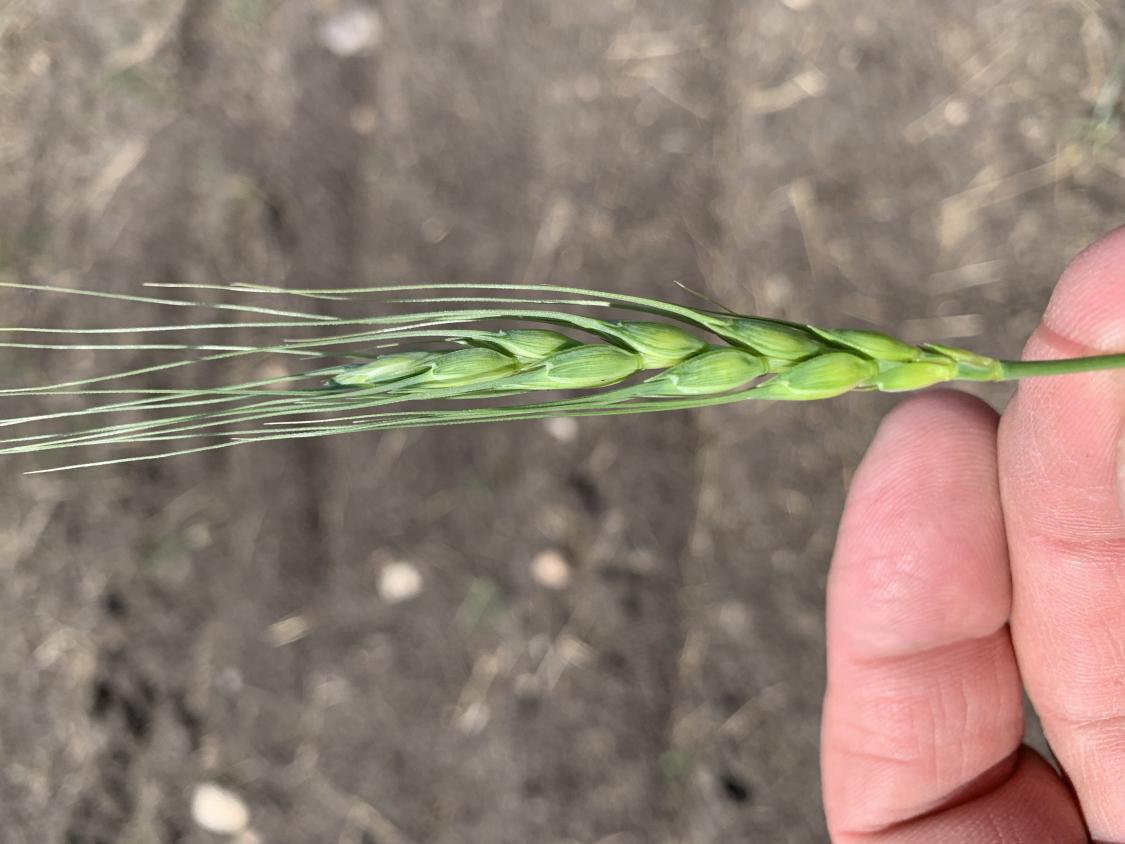 Here is a picture of an HRS wheat plant I missed killing in our canola field this plant and head should be huge well it isn't.
