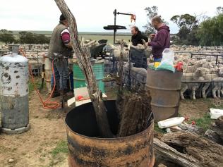 We used to knife cut them at this age then switched to banding them as day olds when we started lambing everything inside. I'm guessing Mallee has one of those fancy production line slide things to tail on like the Kiwis do?