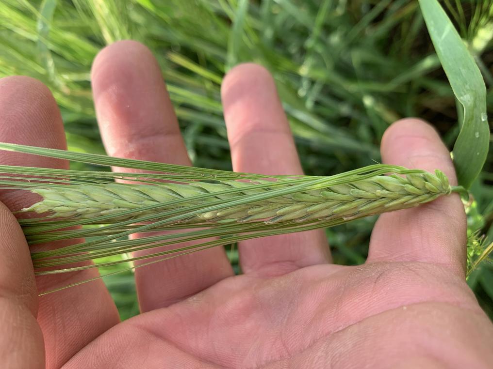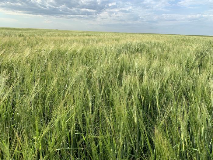 Barley wow did Saskatchewan seed acres of this crop on the drive south yesterday I was amazed less canola more peas lentils and barley. Our barley is filling in nicely and did get a fungicide app early. Head size is good but thinner than last year. Rating is an 8 so far. Some spots are lodging.