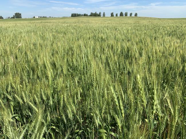 HRS the early is starting to fill and has some colour change. Late is moving along. Lots did not apply fungicides as the crop has 10 stages and is late. Why delay 10 days this year you can't afford to. the last frost was 2004 so if your a gambler odds aren't with us. Rating is an 8 as this crop isn't going to bang out the yields like last year. Heads are bigger, the crop is shorter but fewer heads. Filling 6 to 8 but no 10.