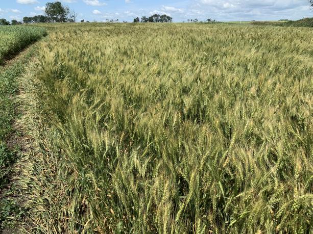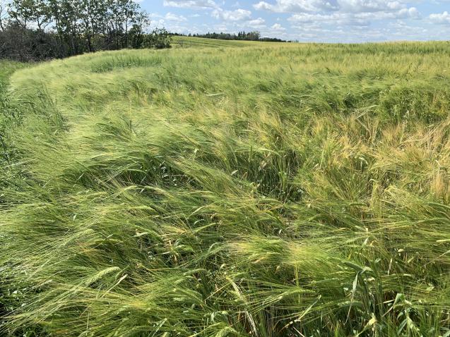 Barley is filling nice and has good size heads. Rain could still plump up the kernel as it won't be swath for 10 days. Its a nice crop don't know if it can hit last years but it's nice. 9. Some guys south of valley will be going next week in barley. lots will. But rain might upset the malt cart. Could be up to 2 in places this weekend.