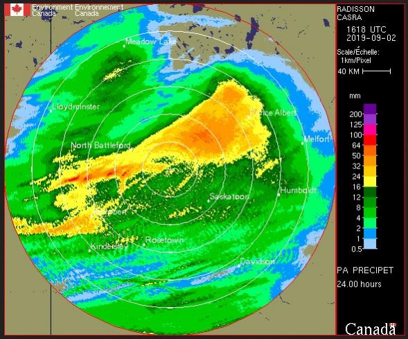 Over 1†west of Saskatoon. Had a thunderstorm early this am, that was like a July storm. Heavy rain and lots of wind.