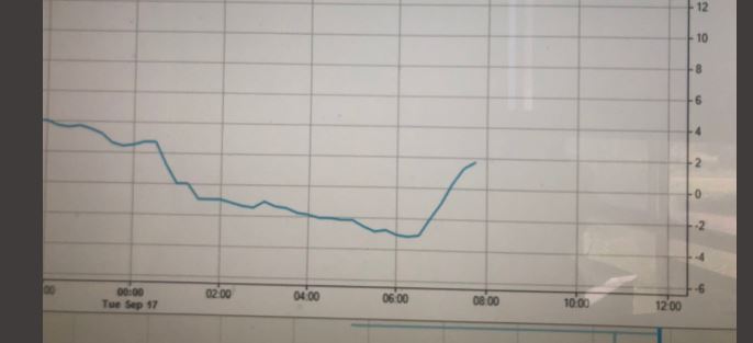 If your having trouble comprehending frost hours last night. 2c is ice but 1c and lower is worse. Anrd hours across bottom.