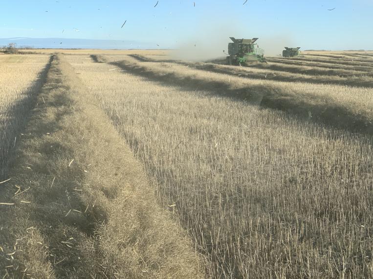 HRS is being left, and guys will get at it after Canola. We are taking three flat fields that I swath yesterday because they were flat on the ground and combine drivers going two mph vs 4.5 just doesn't work any more. Yes, I have guys on swather.