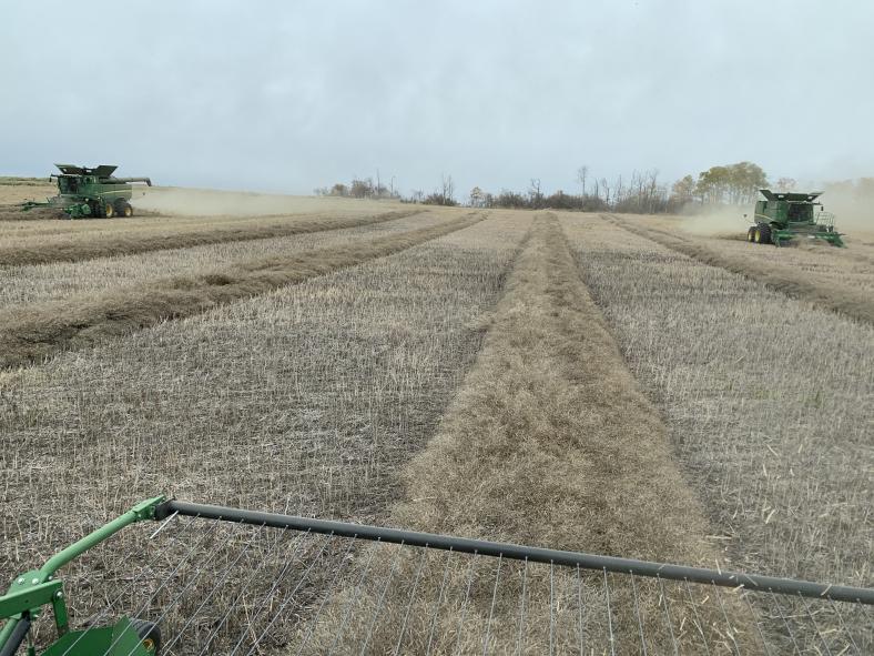 So looking for some advice. We seed canola with 3inc spread tips so we can get enough fert down with one pass. Makes for uneven germination but with the shatter varieties that hasn't been a problem. But it starting to be. I am noticing the first plants that get out of the ground really start branching to fill up the space so I get these contorted stems with branches right to the ground. Then the second wave comes in and fills in. End up with a literal jungle in there that went down with the rains and light snow compared to my neighbors that stood up.