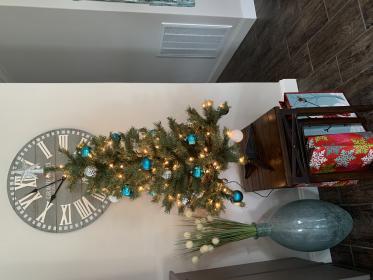 Huge turkey is thawing in the fridge. Batches of cookies from the yearly exchange. Potatoes and gravey. Christmas pudding. Huge tree. And I was told Santa is on the way. Kids. Presents. Looking forward to it. Lucky.