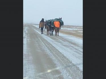 Man Leading 3 Mules from Idaho to Grand Prairie